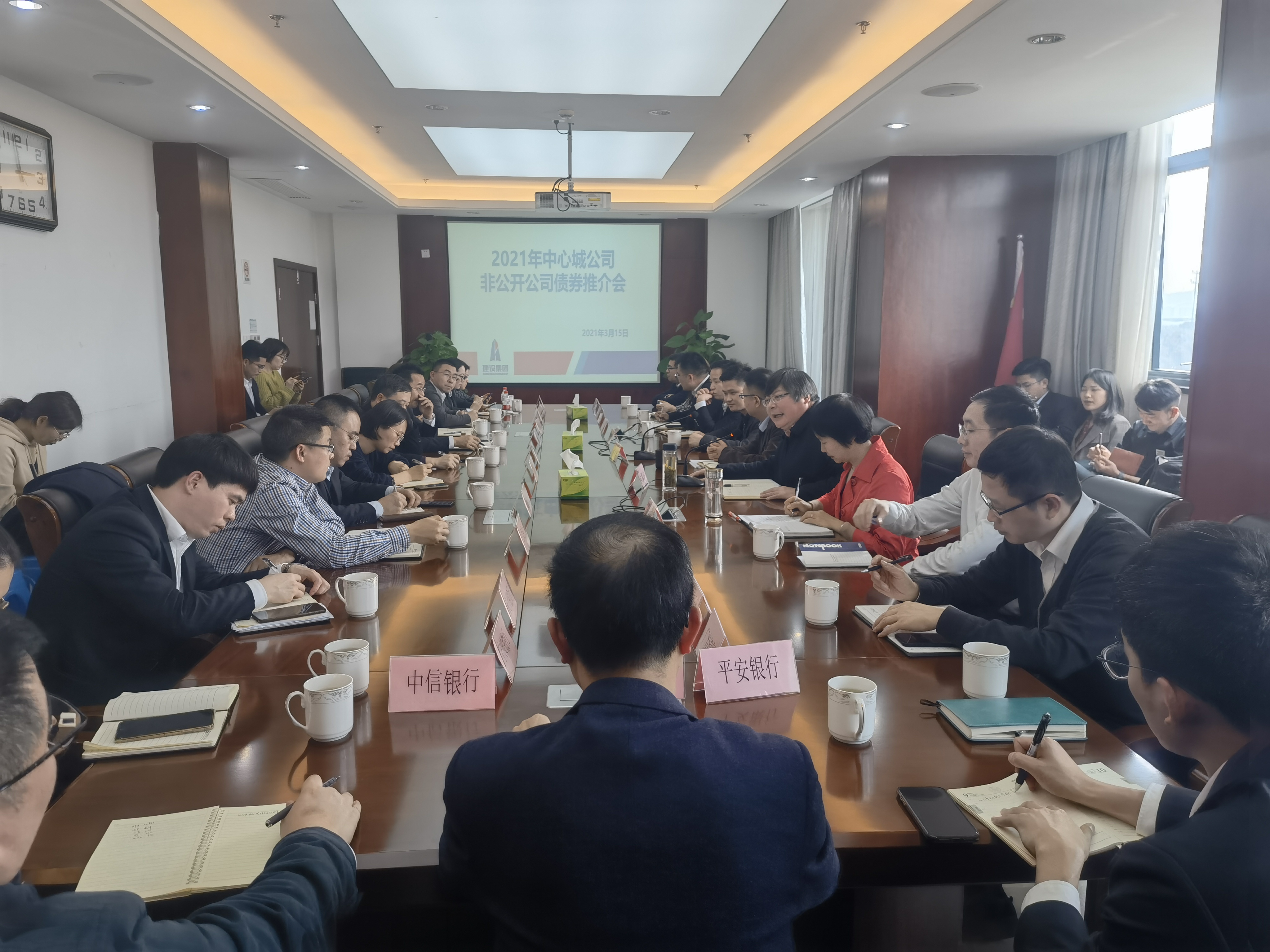 3月15日下午,區(qū)建設(shè)集團召開中心城公司2021年非公開公司債券推介會。集團總經(jīng)理施林濤、副總經(jīng)理包震東、浙商證券投行經(jīng)理楊文生及工、農(nóng)、中、建等21家銀行、浙商證券項目組和集團融資部共40余人參加會議。