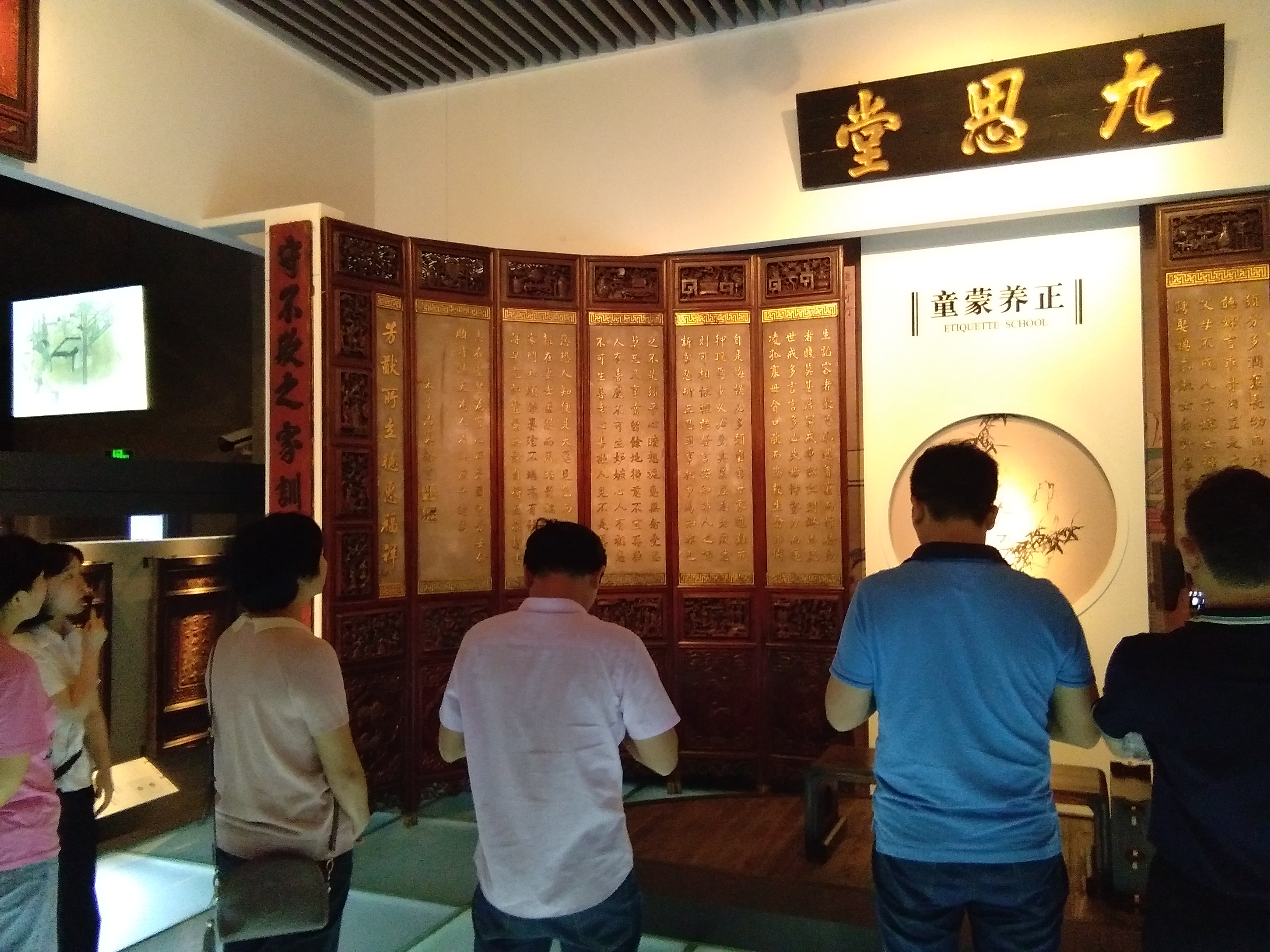 家訓(xùn)館以“小家訓(xùn),大規(guī)矩”為主題,以“修齊治家平天下”為核心,展出了全國各地350余件家訓(xùn)木刻雕板,內(nèi)容涉及孝、悌、忠、信、禮、義、廉、恥等方面,內(nèi)涵深刻,足以為明鑒,足以為警戒,對當(dāng)下“學(xué)家訓(xùn)、立家規(guī)、樹家風(fēng)”有著重要的范導(dǎo)意義。家訓(xùn)館中豐富的內(nèi)容和生動(dòng)立體的展示形式,深深吸引了每一名黨員。