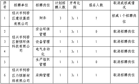 紹興市柯橋區(qū)建設(shè)集團有限公司取消招聘計劃的公告