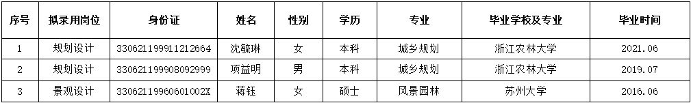 紹興越州都市規(guī)劃設(shè)計院有限公司擬錄用人員公示
